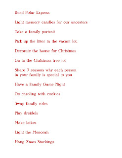 If you would like to use some of my ideas for activities for our family, you can click on each of the three small pictures below for a larger, printable list.
