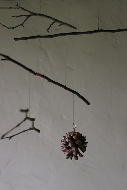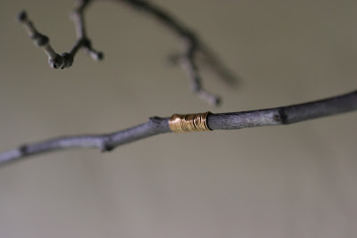 I wanted some other shiny elements to catch her little eye, so I wrapped some sections of the apple branches with pieces of wire that used to belong to my grandmother.